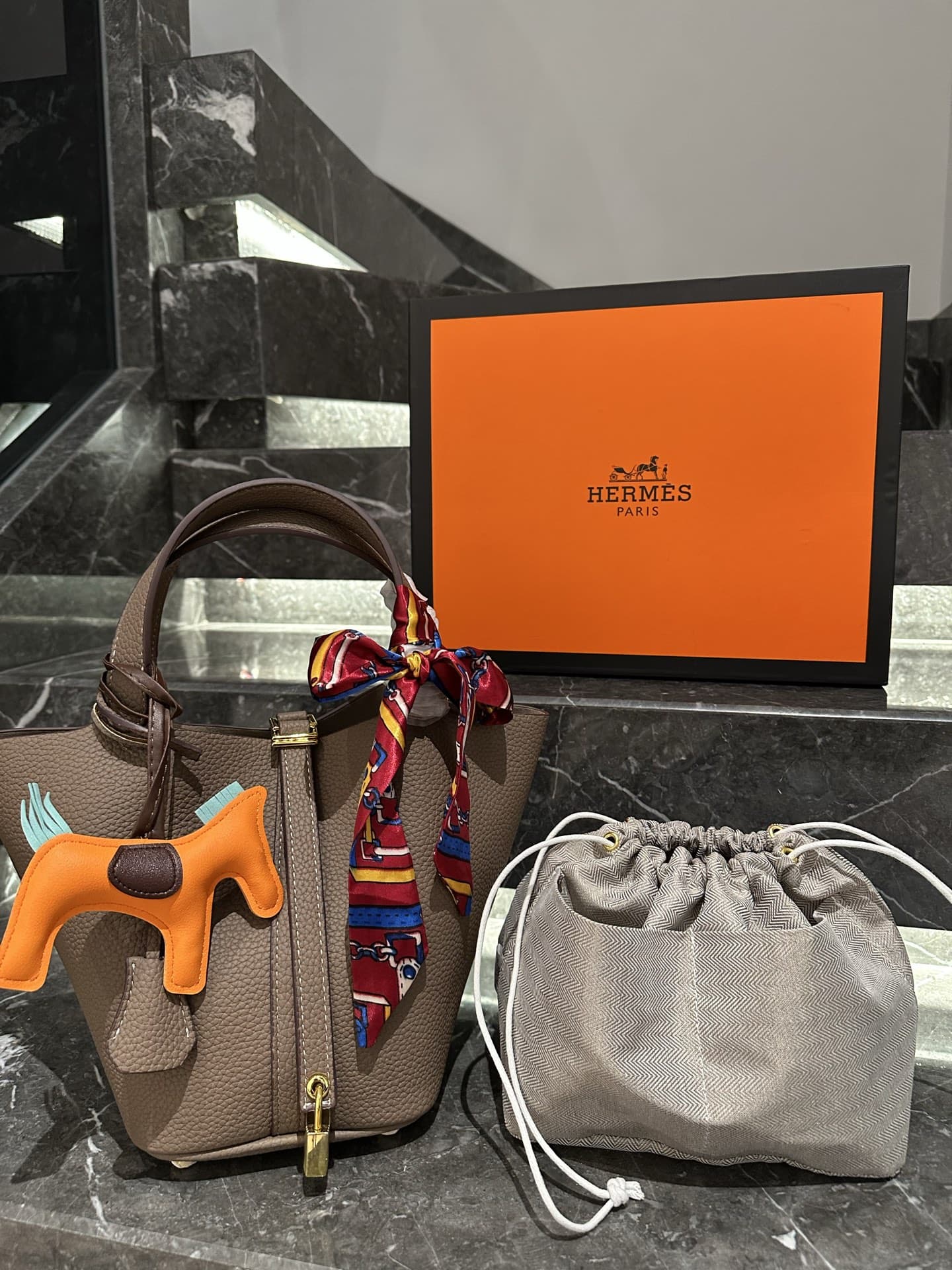 【エルメス】入手困難なピコタンロックPM18+内袋+ポニーペンダント+スカーフ