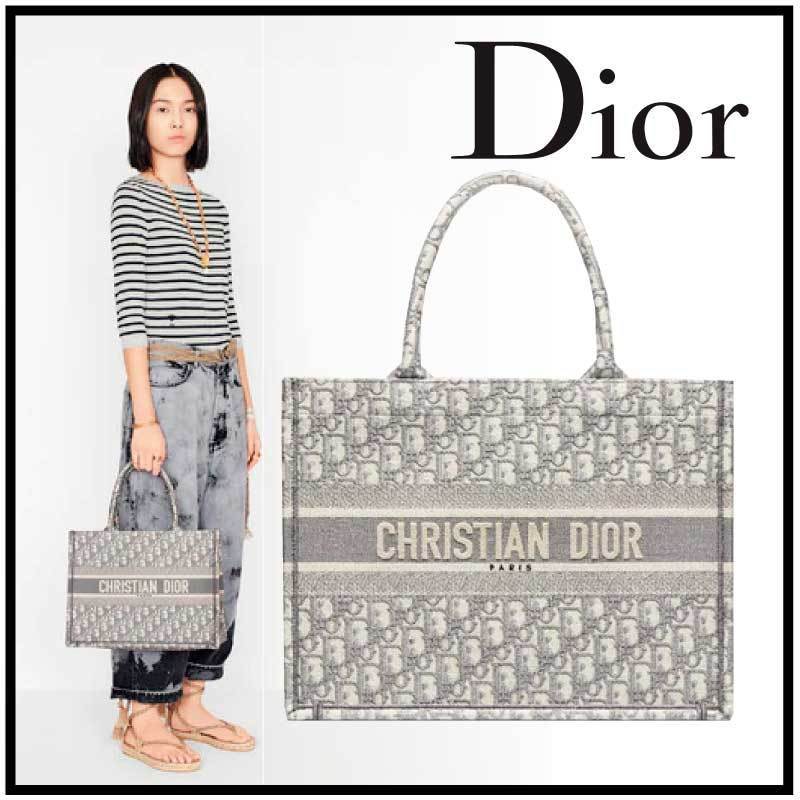 【ディオール】◆大人気 BOOK TOTE 定番柄刺繍 トートバッグ-3 sizes