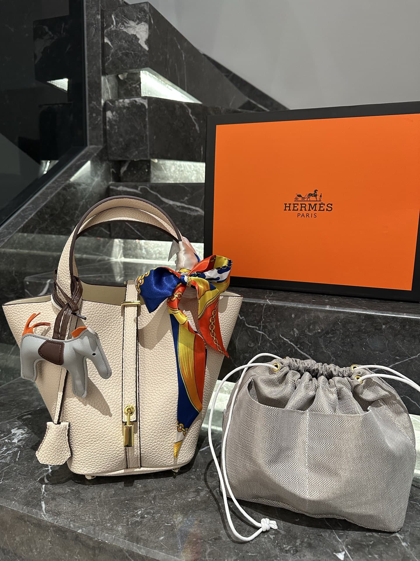 【エルメス】入手困難なピコタンロックPM18+内袋+ポニーペンダント+スカーフ
