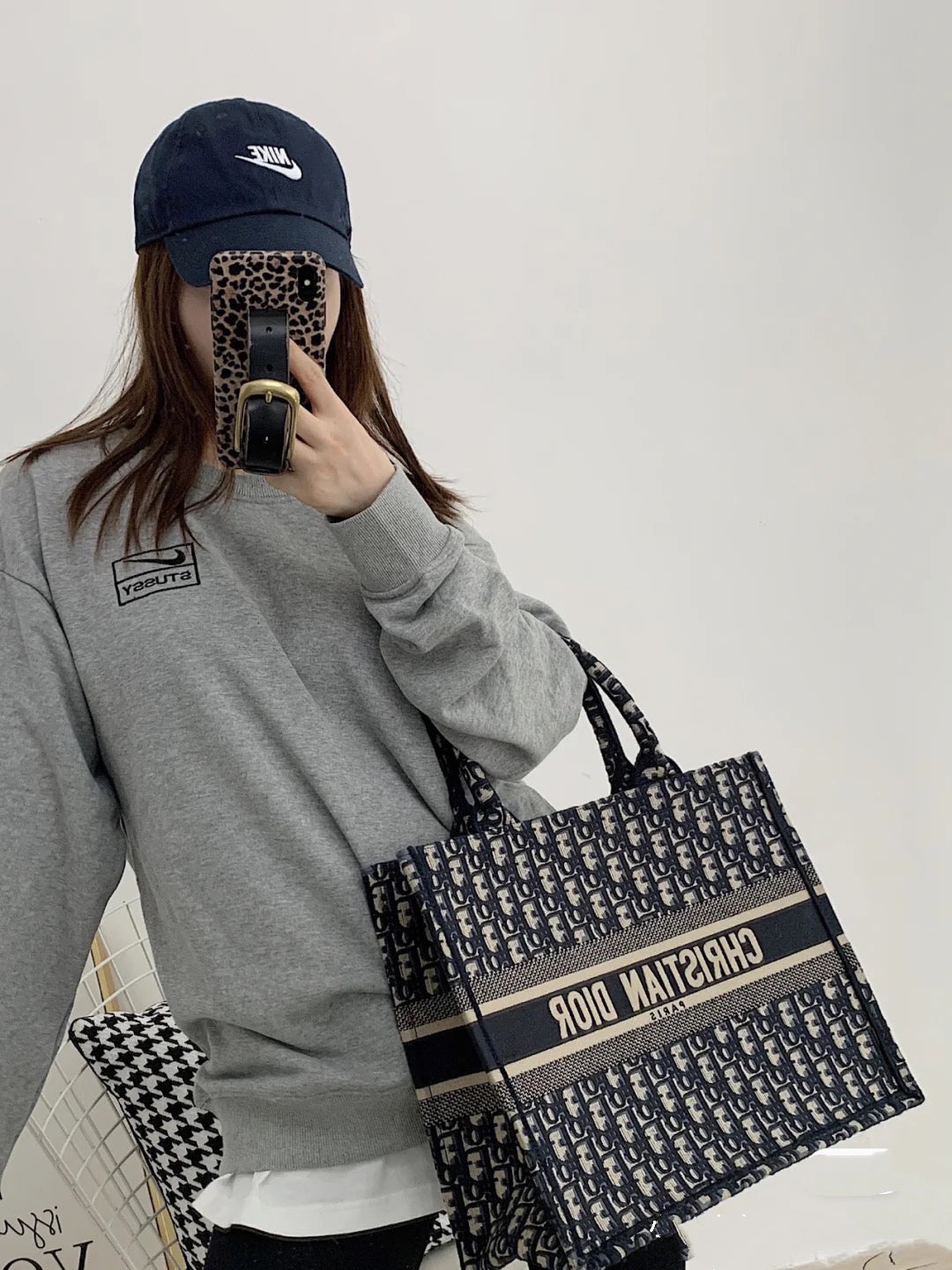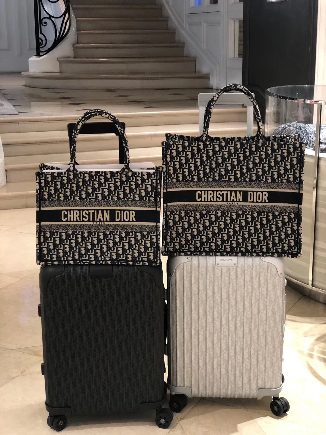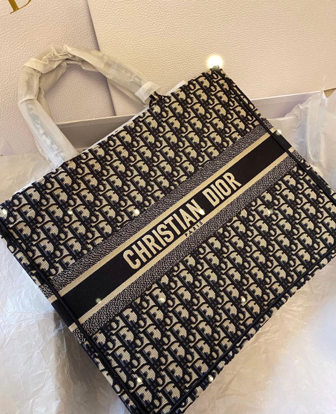 【ディオール】◆大人気 BOOK TOTE 定番柄刺繍 トートバッグ-3 sizes
