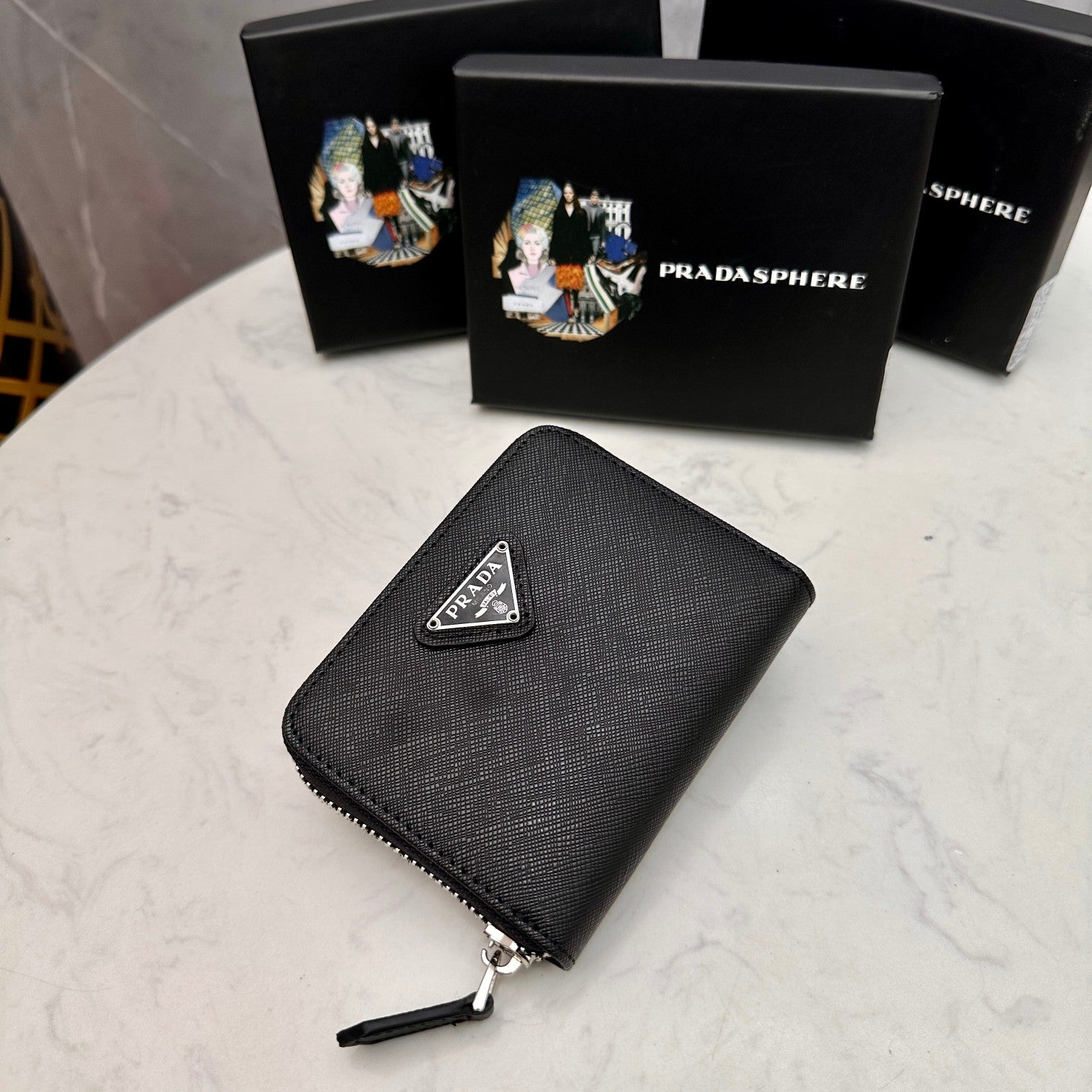 【プラダ】アイコニックな三角プレート付き 小さなジップ財布 春の新作